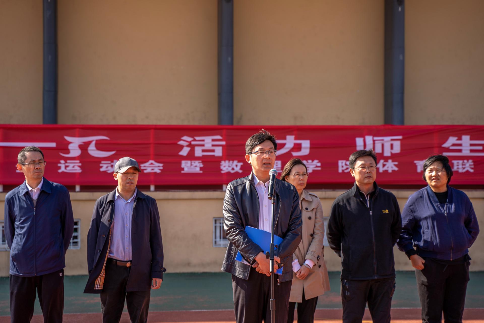 “阳光体育新一π,活力师生展风采”阳光体育师生运动会暨体育联盟成立仪式在崂山校区田径场举办。校团委书记毛常明、学院党政领导及师生参加。